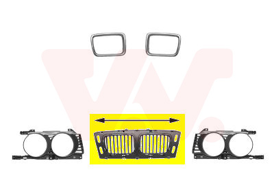 Midden grille sierrooster plastiek (55 cm) 94+ 6 cyl. 8 cyl. aantal