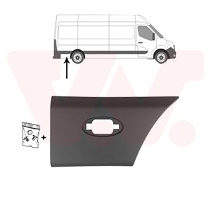 Sierlijst achter rechts zijkant, achter de as korte, middelste wielbasis -gat voor licht