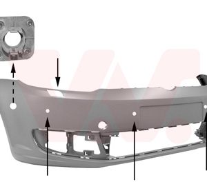 Voorbumper primer -gaten voor sierlijst -gaten voor koplampsproeiers +/-gaten voor parkcontrol